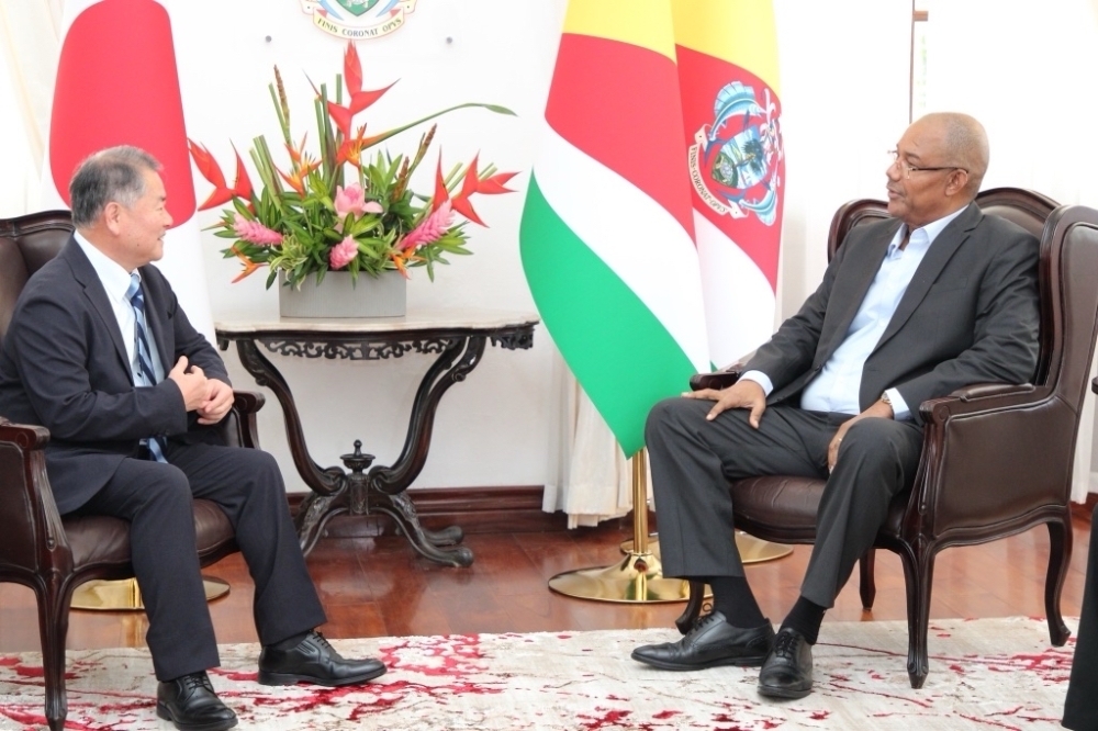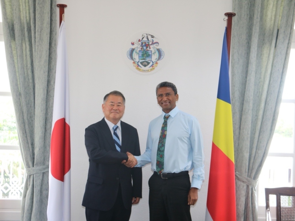 - In Seychelles, Special Advisor OUE paid a courtesy call on H.E. Dr. Patrick HERMINIE, President of the Republic of Seychelles, H.E. Mr. Sebastien PILLAY, Vice-President of the Republic of Seychelles, and H.E. Mr. Barry FAURE, Minister for Foreign Affairs and the Diaspora, and exchanged views on regional affairs and Special Advisor OUE stated the importance of promoting FOIP, and concurred in further promoting cooperation in areas such as maritime security. He also held talks with Major General Michael ROSETTE, Chief of Defence of Seychelles Defence Forces, and exchanged views on security cooperation and concurred in further promoting security cooperation. He also visited the construction site of the Marine Police Headquarters, which is being built with the cooperation of the Japanese government, the Regional Operational Coordination Centre, and the naval base, and exchanged views with Japanese business representatives and other Japanese residents working in Seychelles.