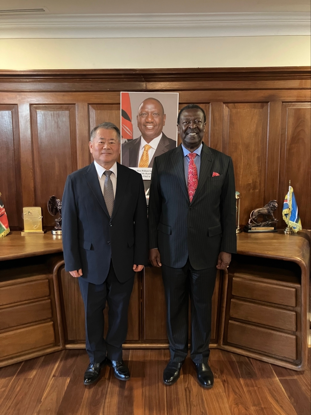 - In Kenya, Special Advisor OUE paid a courtesy call on Hon. Dr. Musalia MUDAVADI EGH, Prime Cabinet Secretary & Cabinet Secretary for Foreign and Diaspora Affairs of the Republic of Kenya, and Amb. Monica Juma, DPhil, CBS, National Security Advisor, where they exchanged views on regional affairs. He also held talks with Gen Charles Kahariri EGH CBS ‘nwc'(USA) ‘psc'(K), Chief of the Defence Forces, exchanging a wide range of views on security cooperation, including promotion of FOIP. In addition, he visited the International Peace Support Training Centre and the Humanitarian Peace Support School, where the Japanese government has provided support for PKO training courses and dispatched instructors, along with Mombasa Port, where the Japanese government has supported the development of container terminals and special economic zones, and the Mtongwe Naval Base. Furthermore, he exchanged views with Japanese nationals, including those involved in Japanese companies operating in Kenya.