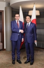 Prime Minister Abe stated that this year marks the 100th anniversary of the establishment of diplomatic relations between Japan and Poland, expressing his intention to foster momentum for the anniversary together with Poland. He also welcomed developments in the strategic partnership, stating that he hopes to continue to closely cooperate with Poland expanding presence in the international community. In response, Prime Minister Morawiecki appreciated that he could meet with Prime Minister Abe soon after the previous meeting, pointing out that Poland is increasing importance within the European Union (EU) and that he would like to pursue a strategic relationship with Japan.