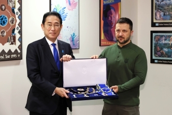 At the outset, President Zelenskyy conferred the Order of Prince Yaroslav the Wise I degree of Ukraine on Prime Minister Kishida in recognition of Prime Minister’s achievements in strengthening bilateral cooperation and supporting Ukraine’s sovereignty and territorial integrity.