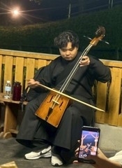 馬頭琴を弾く様子。参加者のモンゴル人留学生が美しい音色を披露してくれました。