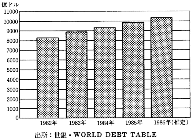 (イ) 現在,開発途上国では,新興工業国・地域の目覚ましい経済発展がある一方,その多くは,一次産品価格の低迷,経済成長の鈍化等の経済的諸困難に直面している。また,中南米諸国及びアフリカ諸国を中心に累積債務問題が深刻化しており,債務国のみならず国際経済全体にとっても大きな不安定要因となっている。さらに,都市のスラム化,砂漠化等の社会及び環境問題を抱える国も多く,世界には未だ一千万人を超える難民と栄養不足に苦しむ数億の人々が存在する。