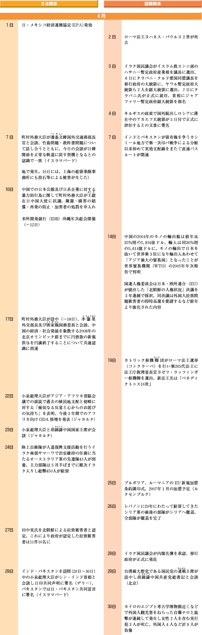 国際主要事項 4月