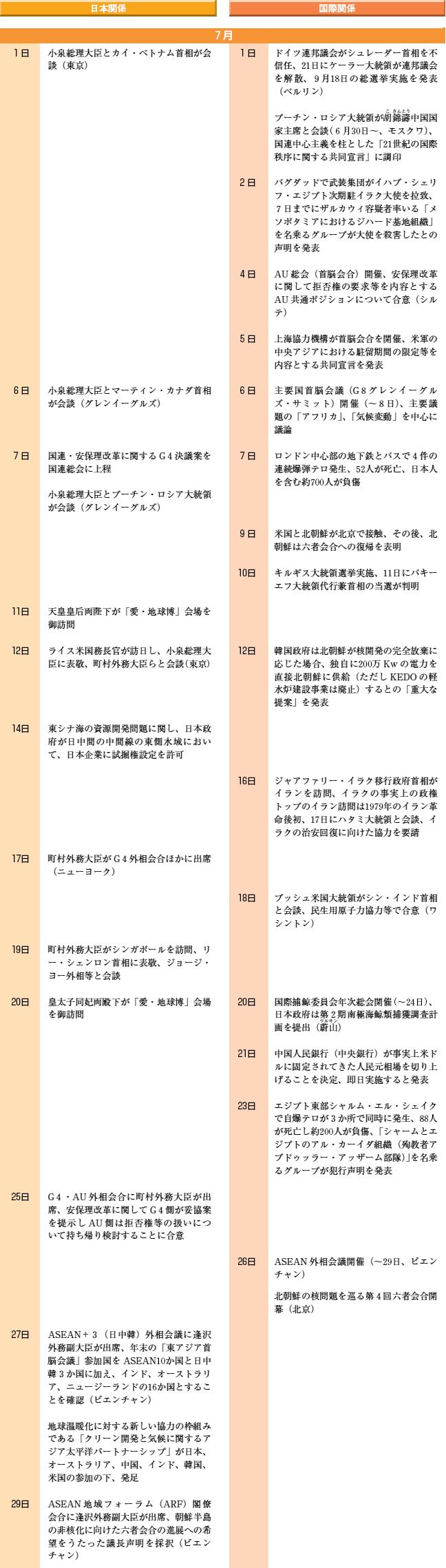 国際主要事項 7月