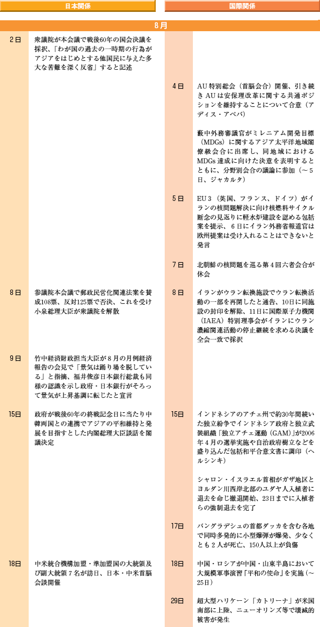 国際主要事項 8月