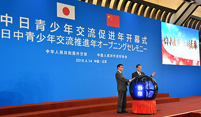4月14日、河野外務大臣と王毅(おうき)国務委員兼外交部長が出席し、中国・北京の釣魚台国賓館において、「日中青少年交流推進年」開幕式が行われました。当日は、北京大学、清華大学、人民大学などから日中両国の大学生ら約250人が集い、直接の交流による相互信頼・相互理解の重要性を確認する盛大な開幕式になりました。