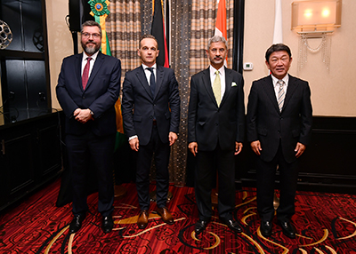 日本は、国連安保理改革の推進のために協力するグループであるG4(日本、インド、ドイツ及びブラジル)の一員としての取組も重視している。茂木外務大臣は2019年9月の国連総会ハイレベルウィークに合わせて開催されたG4外相会合に出席した。G4の外相は同会合で、今期総会において進展を得るため、ムハンマド=バンデ総会議長と連携して政府間交渉のプロセス改善に取り組むこと、2020年の国連創設75周年を念頭に、平和・安全の維持に責任を負う能力と意思を有するG4が緊密に連携しつつアフリカを含む他の有志国に対する関与を継続していくことで一致した。日本は引き続き、改革推進派諸国と緊密に連携し、国連安保理改革の実現に向けたプロセスに前向きに関与していく。