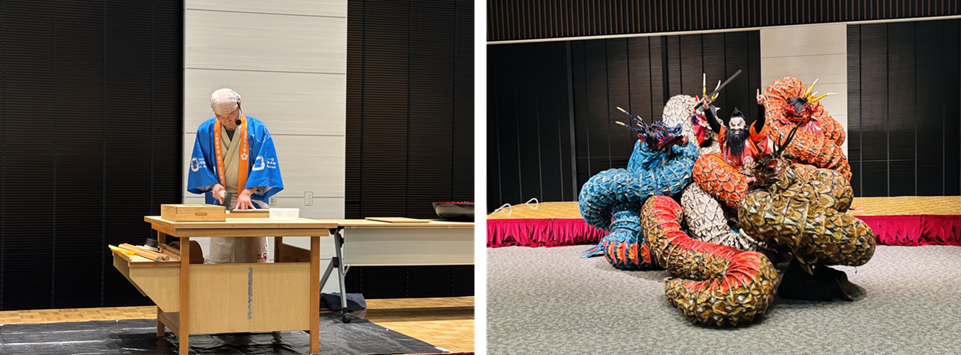 各ステージの様子(左から、福井県のそば打ち、島根県浜田市の石見神楽)