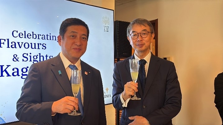 左)塩田康一鹿児島県知事、右)今西淳在ドバイ日本国総領事