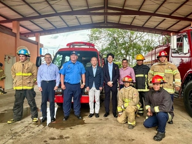 この代表団は、ニカラグア滞在中、様々な活動を行いました。スポーツ庁や関連団体(空手連盟、柔道連盟、野球連盟)との会合。東京五輪2020に出場し、甘楽町を訪問したこともある、柔道のイサヤナ・マレンコ選手との再会もありました。また、青年省では甘楽町にお住まいのみなさんから寄付いただいた靴の寄贈式が行われました。エル・ロサリオ消防署にも行き、先に述べた甘楽町が寄贈した中古消防車がしっかり活躍していることを確認しました。