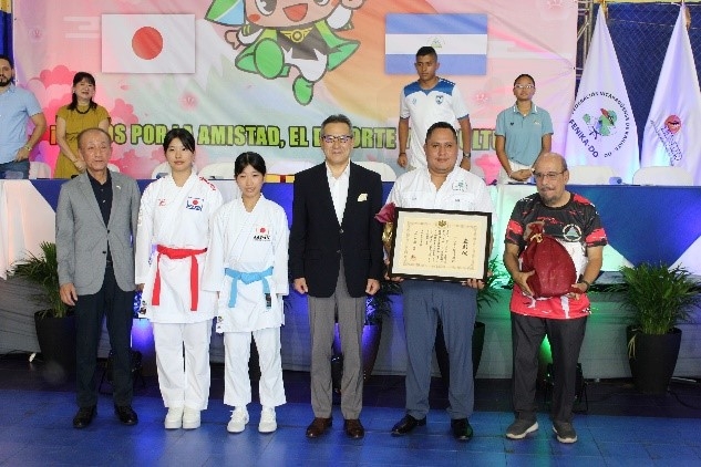 このように甘楽町とニカラグアの交流が深まっている中、昨年2025年は、日本とニカラグアを含む中米各国が外交関係を樹立してから90周年を迎える記念すべき年でした(「日・中米交流年2025」)。この記念すべき年の11月、同交流年を祝賀するため、森平仁志甘楽町長、中学生空手チャンピオンの林姉妹など7名がニカラグアを訪問しました。