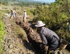 高低差利用した水供給施設のパイプ埋設