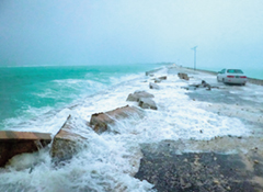 改修前のコーズウェイが高潮による波の影響を受ける様子(写真:JICA)