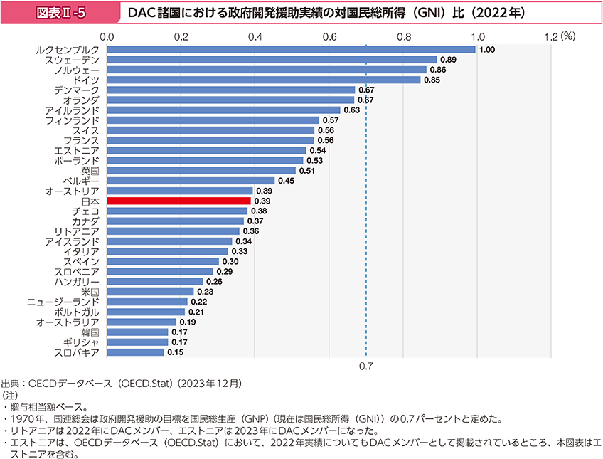 - 注1 : 2023年DACメンバーのODA実績確定値は2024年末以降に公表される予定。
