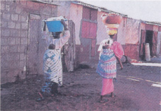 (セネガル、ダカール市近郊)教室内の状況 セネガルの漁村風景-女性の水産物小売業者