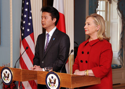 19日午前11時45分(現地時間)から約110分間,訪米中の玄葉外務大臣は,クリントン国務長官との間で日米外相会談を行ったところ,概要以下の通り(先方:キャンベル国務次官補,シファー国防次官補代理,ヌーランド国務省報道官ほか,当方:藤崎駐米大使,鶴岡総合外交政策局長,八木経済局長,伊原北米局長,横井外務報道官ほか同席)。