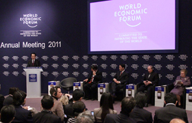 1月29日,菅総理は,「新しい現実のための共有規範」をテーマとする本年のWEF年次総会において,「開国と絆」と題する特別講演を行った(シュワブWEF会長が進行役・コメンテーター)。