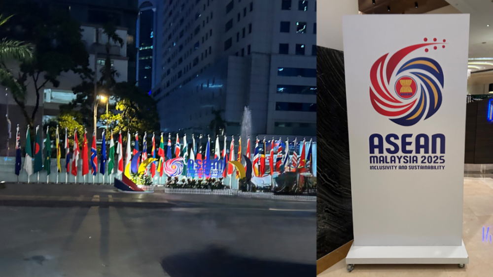 ASEAN関連外相・首脳会議の会場とマレーシア議長年のロゴ
