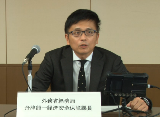 第1部では、昨年8月に新たに設置された外務省経済局経済安全保障課の舟津龍一課長が講演を行いました。