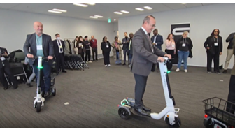 SICで活躍するスタートアップの例として、橋本英梨加株式会社ストリーモ取締役・執行責任者より事業の説明を受けたのち、同社が開発・製造・販売を行う立ち乗り三輪モビリティ「ストリーモ」の試乗体験を行いました。本事業は本田技研工業の新規事業開発プログラム「IGNITION」から2021年に独立したスタートアップ事業で、参加者からは具体的な導入の方法や、メンテナンス方法など具体的な質問や意見交換が行われました。