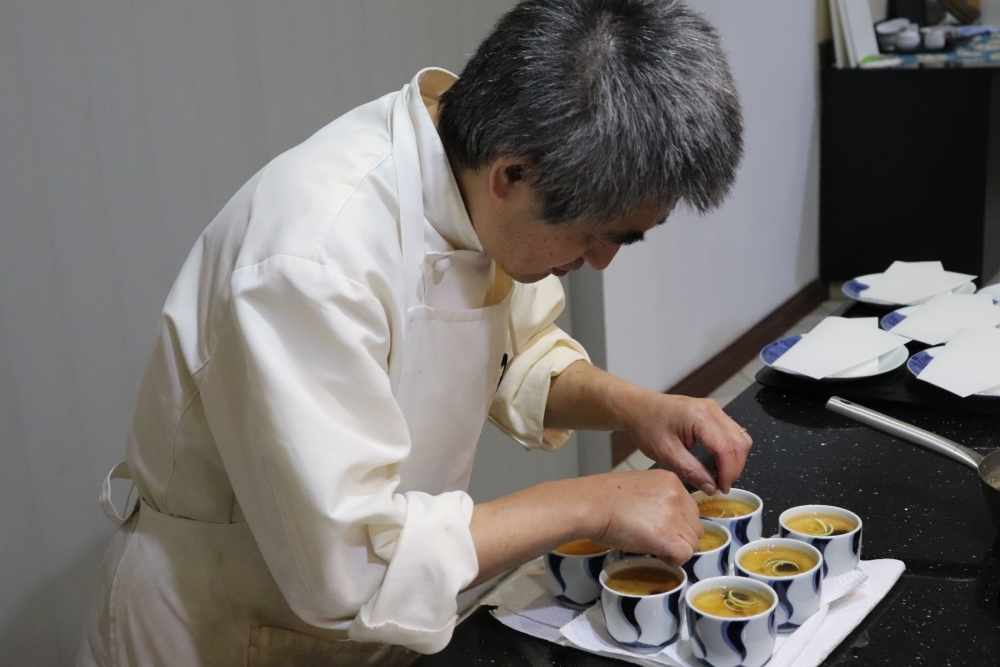 駐マラウイ日本大使公邸では、日本の伝統と味を世界へ届けるため、大藤禎晃(おおふじ さだあき)料理人が腕を振るっています。フランス料理の技術を持つシェフでありながら、ここマラウイでは主に日本料理を提供し、時にはフランス料理も織り交ぜながら、ゲストに感動を与える料理を作り続けています。