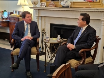 - 今回の訪問の機会に、長島補佐官は、カート・キャンベル国務副長官(the Honorable Kurt Campbell, Deputy Secretary of State)、アマンダ・ドーリー国防次官代行(Ms. Amanda J. Dory, Acting Under Secretary of Defense for Policy)及びミラ・ラップ=フーパーNSC上級部長(Dr. Mira Rapp-Hooper, Special Assistant to the President and NSC Senior Director)といった米国政府関係者と会談し、外交・安全保障を中心とする日米関係、地域情勢等につき意見交換を行いました。