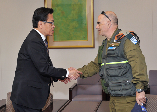 - 本11日(月曜日)13時40分から約20分間,高橋千秋外務副大臣は,イスラエル医療支援チームの代表(シャローム・ベンアリエ准将(団長)(BG Shalom Ben-Arye))他による表敬を受けました。