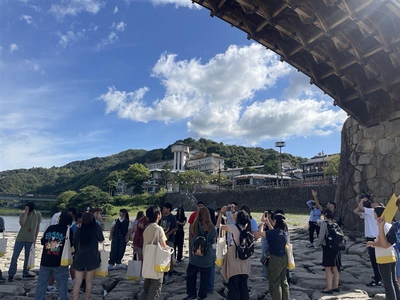 学生たちは、錦帯橋を訪れ、その歴史や伝統的な建築構造について学びました。岩国飛行場に戻った後、錦帯橋をPRするためのキャッチフレーズについてグループで考え、英語と日本語でプレゼンテーションを行いました。
