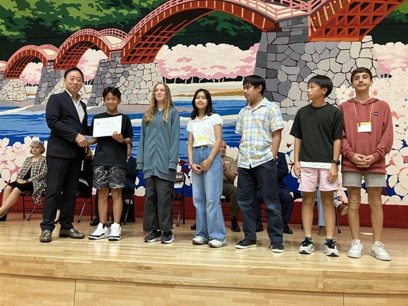 日本側から、福田良彦岩国市長、守山敏晴岩国市教育委員会教育長、高尾直外務省北米局日米地位協定室長等が、米側からケネス・ロスマン米海兵隊岩国飛行場司令官(大佐)(Colonel Kennth K. Rossman, Commanding Officer, Marine Corps Air Station Iwakuni)、エリン・グレイザック米国防省教育部(DoDEA)太平洋東地区副教育長(Ms. Erin Grazak, Community Superintendent, DoDEA Pacific East District Superintendent)等が出席し、参加者全員の2日間の健闘を称え、挨拶を行いました。また、日本人学生の御両親にも参加していただきました。