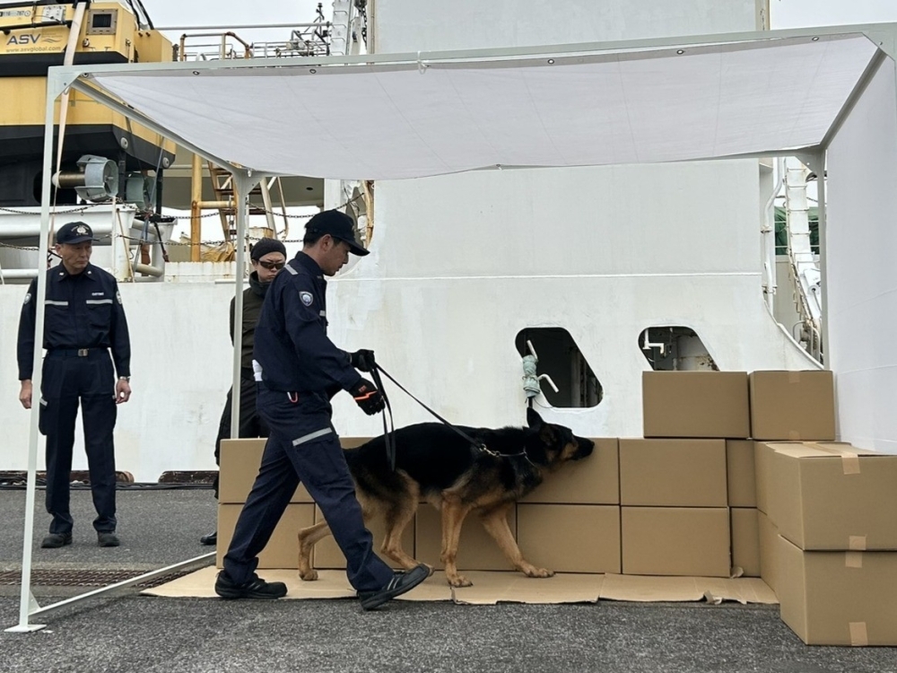 税関爆発物探知犬によるコンテナ内検査
