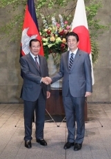 本31日午前11時50分から約50分間,安倍晋三内閣総理大臣は,官邸において,訪日中のフン・セン・カンボジア王国首相(Samdech Akka Moha Sena Padei Techo HUN SEN, Prime Minister of the Kingdom of Cambodia)と首脳ワーキングランチを行ったところ,概要は以下のとおりです。なお,会談には西村康稔内閣官房副長官,野上浩太郎内閣官房副長官,薗浦健太郎内閣総理大臣補佐官他が同席しました。また,会談に先だって,両首脳は,無償資金協力「人材育成奨学計画」及び「シハヌークビル港経済特別区における貨物混載倉庫等の建設支援(経済社会開発計画)」に関する交換公文の署名に立ち会いました。