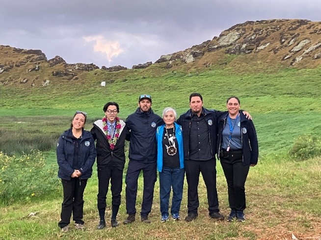 Inspection of the Moai restoration site with the local indigenous leader group managing the Moai