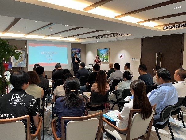 On July 19, Miyazaki City held a tourism PR event in Qingdao, China, targeting local travel agencies. In addition to providing tourism information, the event featured a standing reception where attendees enjoyed Miyazaki's famous dishes, such as Chicken Nanban and shochu, showcasing the city's culinary appeal.