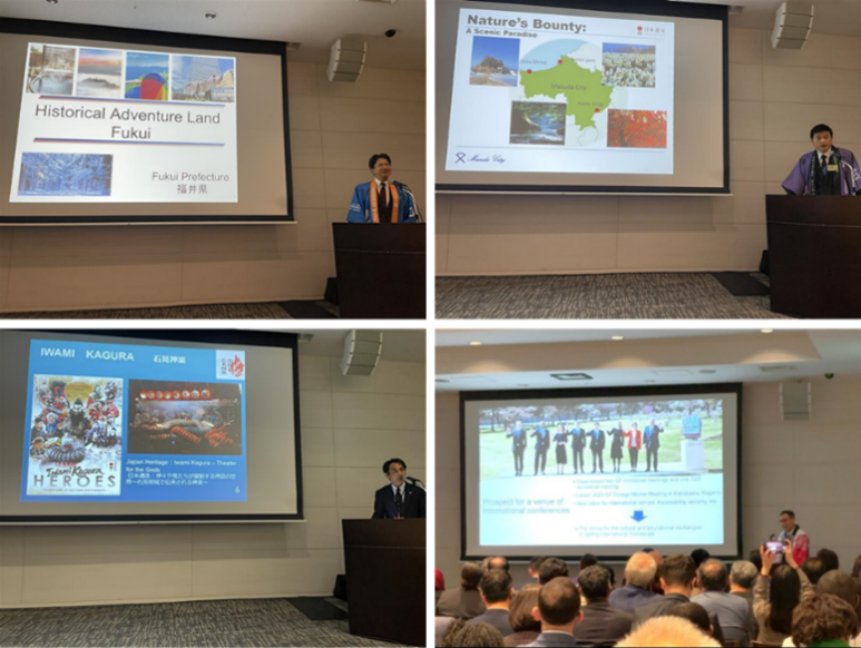 On November 10, the Ministry of Foreign Affairs hosted the Regional Promotion Seminar FY 2025 in Tokyo, jointly with the local governments of Fukui Prefecture, Masuda City of Shimane Prefecture, Hamada City of Shimane Prefecture and Karuizawa Town of Nagano Prefecture. Approximately 85 guests, including members of the diplomatic corps in Japan, attended the seminar. Each local government gave a presentation to the participants highlighting its unique features such as regional industries, tourism, local products, traditional performing arts. They also showcased various regional attractions through booth displays and stage performances.
