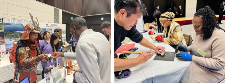 Participants at the booths of local governments (From left, Masuda City, Karuizawa Town)