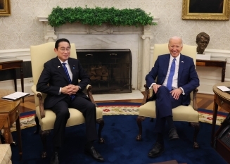 On April 10th, commencing at 10:50 a.m. (11:50 p.m. on April 10th, Japan time) for approximately 85 minutes, Mr. KISHIDA Fumio, Prime Minister of Japan, during his official visit to Washington D.C., held a meeting with the Honorable Joseph R. Biden, Jr., President of the United States of America. The overview of the meeting is as follows (the small group meeting commenced at 10:50 a.m. (11:50 p.m. on April 10th, Japan time) and lasted approximately 30 minutes; the expanded meeting commenced at 11:25 a.m. (0:25 a.m. on April 11th, Japan time) and lasted approximately 55 minutes).