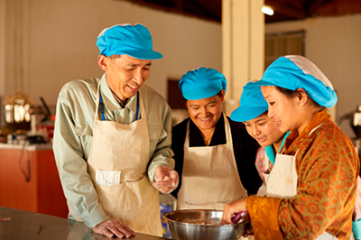 A Senior Volunteer giving instruction on processing agricultural products in Bhutan (Photo: JICA)