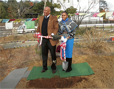 Tree planting ceremony to plant reconstruction memorial tree by their majesties King Letsie III and Queen Masenate Mohato Seeiso of Lesotho (November 26, Soma City, Fukushima Prefecture)(4) Central Africa