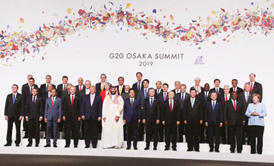 En 2019, le Japon a assuré pour la première fois la présidence du G20 et a organisé, outre le sommet d'Osaka, huit réunions ministérielles abordant des thèmes connexes dans diverses régions de l'archipel. Lors du sommet d'Osaka organisé par le Premier Ministre ABE, les dirigeants ont eu des discussions animées sur des thèmes caractérisés par la complexité des intérêts des différents pays, tels que le commerce international, les problèmes environnementaux à l'échelle mondiale, et l'économie numérique, qui ont débouché sur l'adoption de la « Déclaration d'Osaka des dirigeants du G20 » en tant que document final.